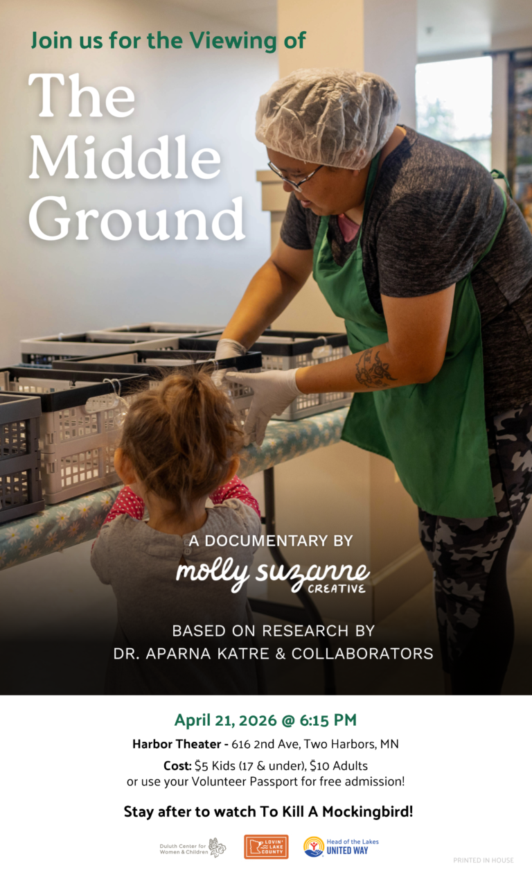 The Middle Ground highlights a powerful, values-based food system connecting small scale farmers to food insecure households. Grounded in research by Aparna Katre and initiatives like Nourish, the film showcases the impact of collaboration. Featuring trusted local partners: Duluth Center for Women and Children, Gloria Dei Lutheran Church, Community Action Duluth (Seeds of Success), and University of Minnesota Duluth it shows how aligning missions builds a stronger, more self-reliant community. Produced by Molly Suzanne Creative, led by DCWC’s Molly Williams.